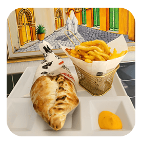 Salade, tomates, oignons, 1 viande au choix, fromage + Frites maison.